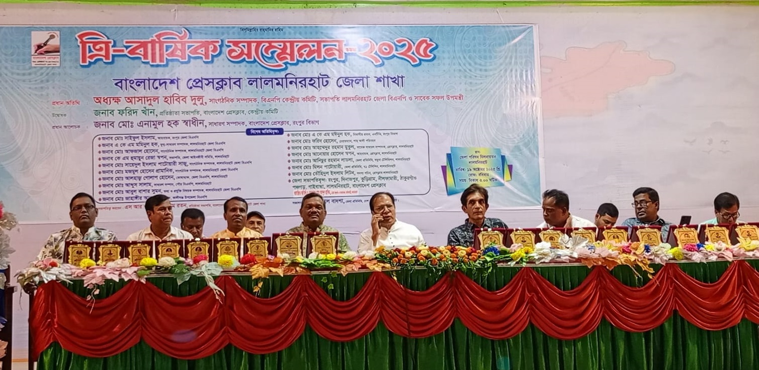 বাংলাদেশ প্রেসক্লাব লালমনিরহাট জেলা শাখার উদ্যোগে আজ ১৯ অক্টোবর ২০২৫ ইং ত্রি- বার্ষিক সম্মেলন-২০২৫ অনুষ্ঠিত হয়।অনুষ্ঠানে প্রধান অতিথি হিসেবে উপস্থিত ছিলেন অধ্যক্ষ আসাদুল হাবিব দুলু,সাংগঠনিক সম্পাদক, বিএনপি কেন্দ্রীয় কমিটি,সভাপতি লালমনিরহাট জেলা বিএনপি ও সাবেক সফল উপমন্ত্রী।এ সময় উদ্বোধক হিসেবে উপস্থিত ছিলেন জনাব ফরিদ খাঁন, প্রতিষ্ঠাতা সভাপতি, বাংলাদেশ প্রেস ক্লাব, কেন্দ্রীয় কমিটি।